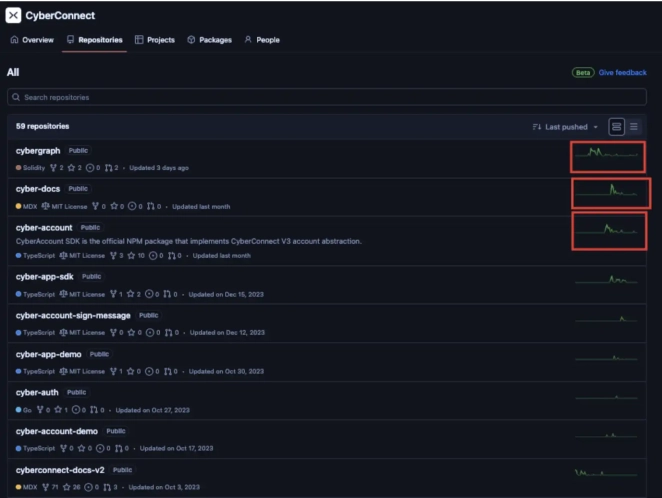 CyberConnect уже було запущено. Амбасадорська програма носила освітній характер у галузі SocialFI. Програма CyberTelegram тривала до 24/03/2023. У нагороду учасники отримували Mystery boxes, які торгувалися по 0,45 ETH.