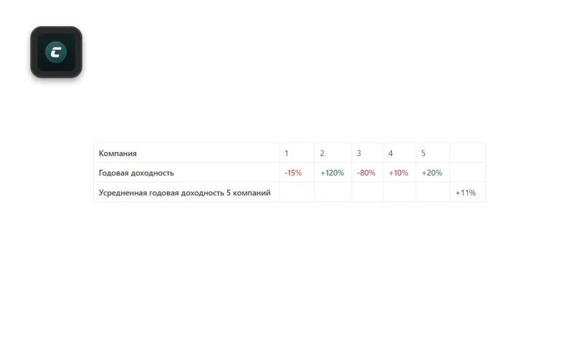 Проведемо невеликий розрахунок. Припустімо, існує індекс "Cryptology", що відстежує 5 цікавих проєктів у галузі штучного інтелекту. Це максимально нова сфера, що динамічно розвивається. Навіть венчурні фонди не знають, що саме зростатиме найбільше, тому проінвестували в усі 5 компаній.