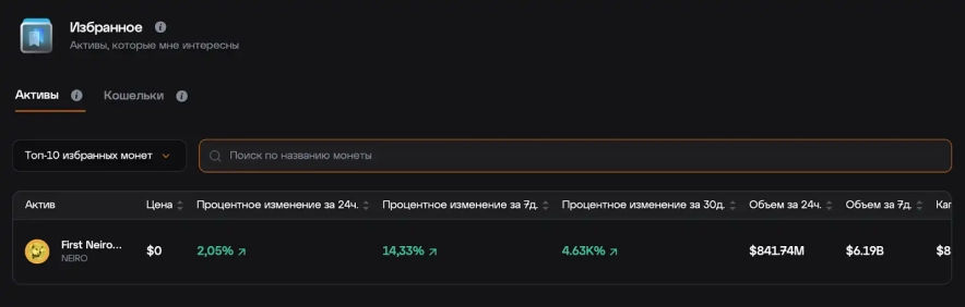У "Вибраному" можна зберігати будь-які активи та гаманці, які мають значення для вашої торгової стратегії. Це дає змогу зосередитися на спостереженні за ключовими елементами ринку, не відволікаючись на менш важливі дані.