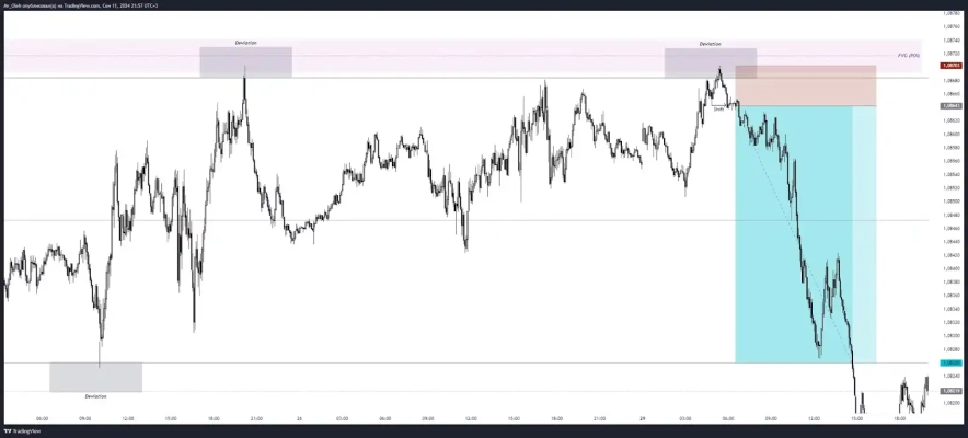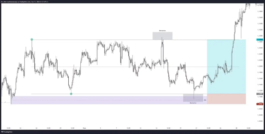 Розберемо на даному прикладі від теста POI, для цього позначимо межі консолідації, зону інтересу та девіації після чого перейдемо на LTF (менший таймфрейм)