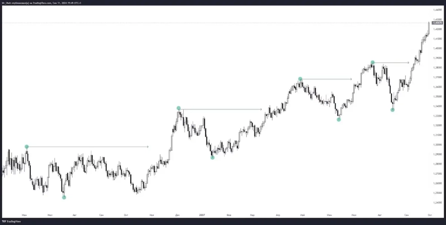 - Реакція на попередній тренд — після сильного цінового руху ринок може входити в фазу консолідації, щоб "перепочити" та набрати нову динаміку.