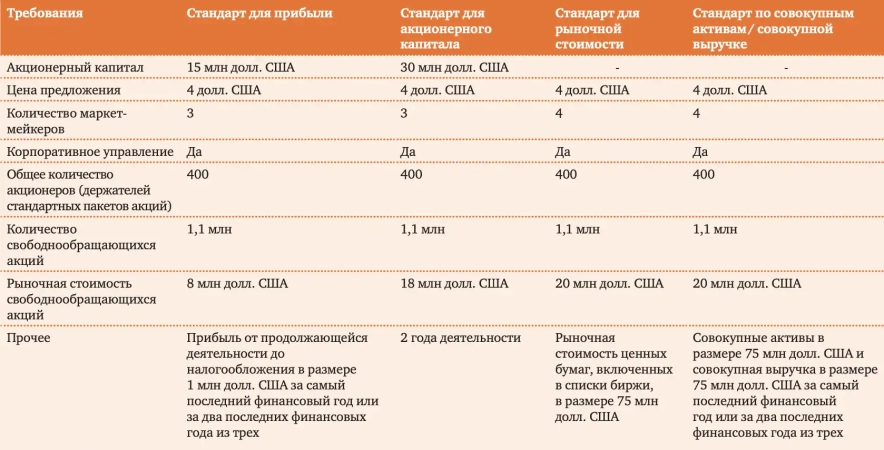 Nasdaq Capital Market: для того, щоб компанія могла розмістити свої акції на цьому майданчику, вона повинна відповідати всім критеріям одного з 4 стандартів.