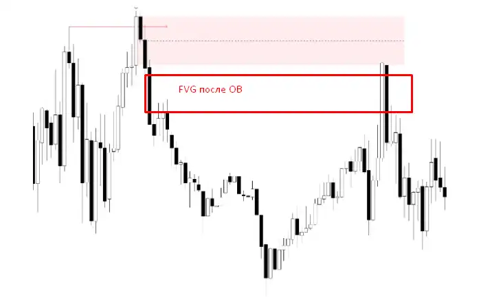 Імбаланс після OB: В імпульсному русі одразу після формування OB хорошим фактором буде наявність імбалансу (FVG), що стає додатковим підтвердженням валідності ордерного блоку. (рис. 3)