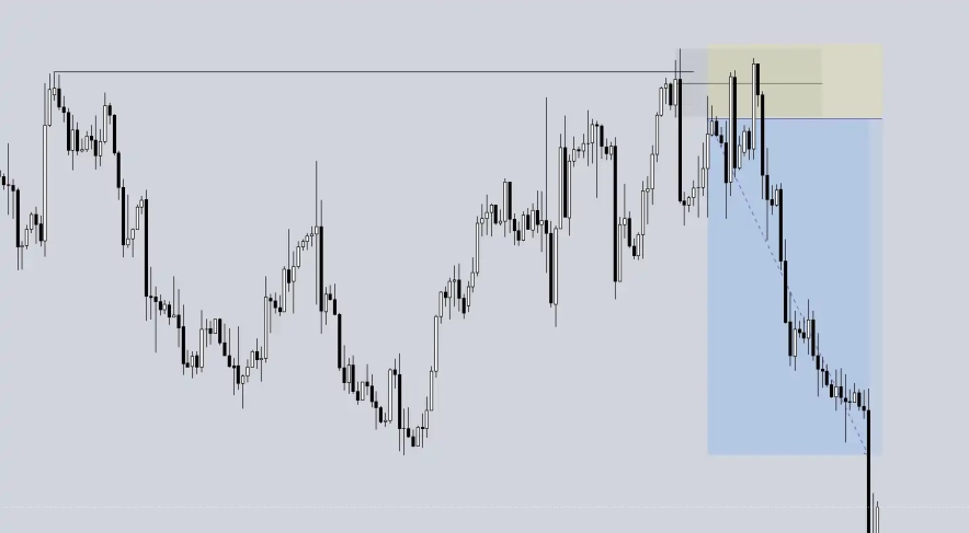 - Розворот ціни і початок імпульсного руху: Після зняття ліквідності ціна починає рухатися в новому напрямку з явним імпульсом.