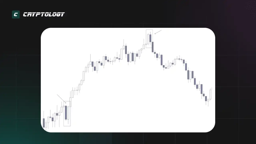 Зовнішній бар (модель поглинання): cвічка, яка повністю поглинає попередню, вказуючи на можливий розворот.