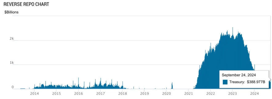 Говорячи про поточну ситуацію, з кінця 2020 року ФРС відійшла від політики репо і з 2021 року почала активно збільшувати обсяги операцій зворотного репо в рамках програми кількісного посилення - QT. Пік активності зворотного репо припав на грудень 2022 року.