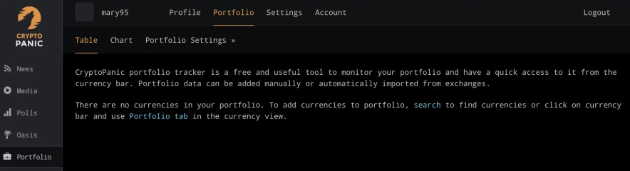 Також є цікава вкладка - портфель. Дані про ваш портфель можна додавати вручну або автоматично імпортувати з бірж.