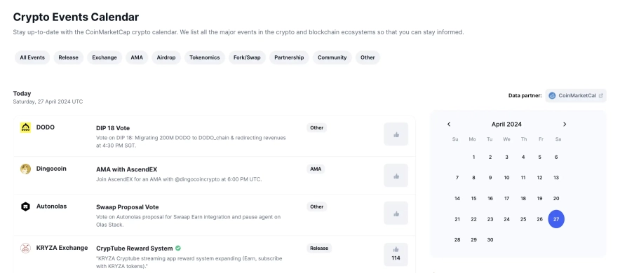 Тут можна знайти інформацію про всі ключові події у світі криптовалют, розглядаючи кожну монету або токен окремо. Криптокалендар CoinMarketCal має низку важливих переваг.