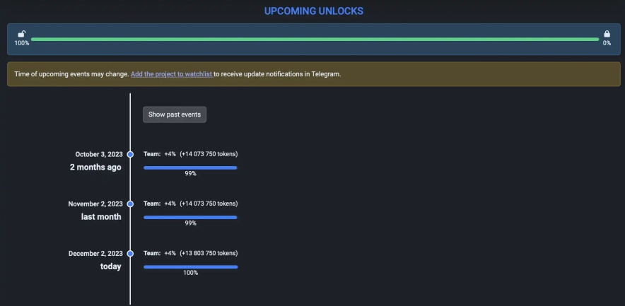 На платформі також є розділ "Календар", у якому можна відстежувати інформацію про майбутні розблокування токенів.