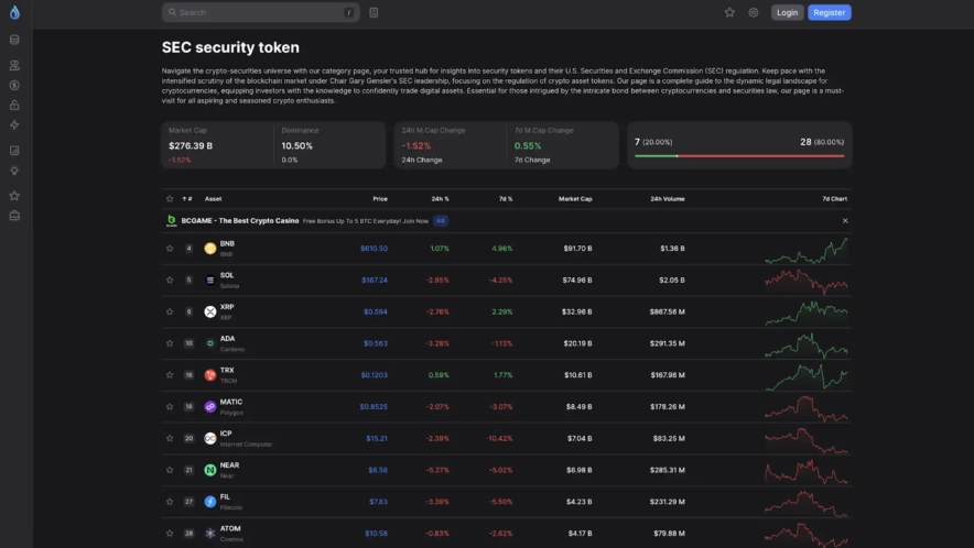 Особливо цікаво, що на платформі є окрема вкладка, присвячена токенам, на які зазіхнули SEC. Тут можна отримати інформацію про токени та їх регулювання Комісією з цінних паперів і бірж США. Докладний матеріал про монети, які перебувають під загрозою.