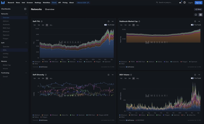 У цій вкладці можна відстежувати як цілі сектори, наприклад, DeFi, так і окремо взяті мережі та монети у вигляді зручних метрик.