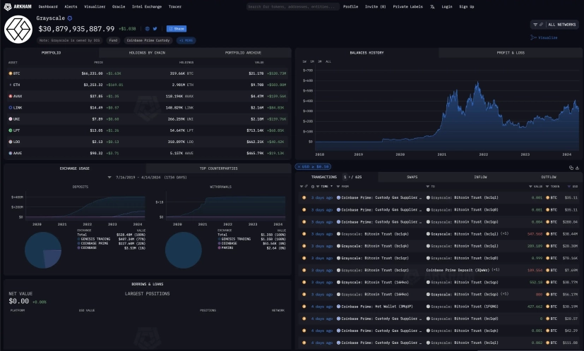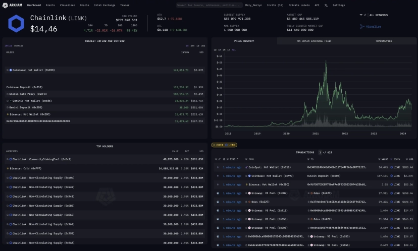 Arkham - це платформа, яка дозволяє користувачам проводити аналіз транзакцій у різних блокчейнах. На Arkham доступні статистичні та історичні дані, інструменти для візуалізації транзакцій, а також детальний аналіз активності окремих гаманців. Платформа також оснащена зручними фільтрами і дашбордами, що спрощує структурування і глибокий аналіз даних згідно з особистими уподобаннями користувача.