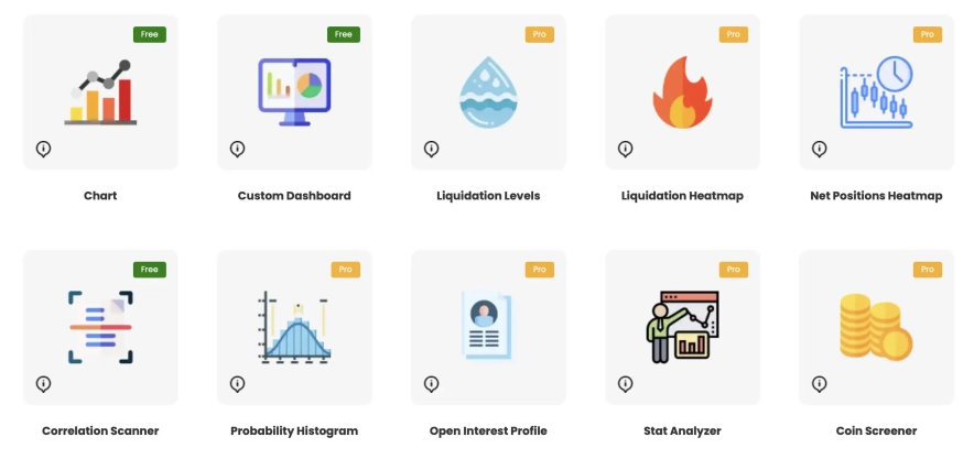 Hyblock Capital являє собою платформу, націлену на надання інструментів і ресурсів для аналізу та управління інвестиціями. Ця платформа має широкий спектр функціональних можливостей, включно з відстеженням портфоліо, аналізом ринкових даних, моніторингом рівнів ліквідацій, а також пропонує скрінер криптовалюти і безліч інших інструментів. Деякі базові функції доступні безкоштовно, однак за доступ до більш розширених функцій потрібна оплата.