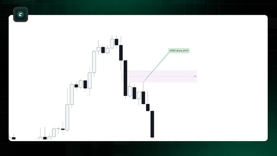 1. IOFED (Entry Drill) — частковий ретест без досягнення 50% зони FVG. Зазвичай спостерігається на молодших таймфреймах.