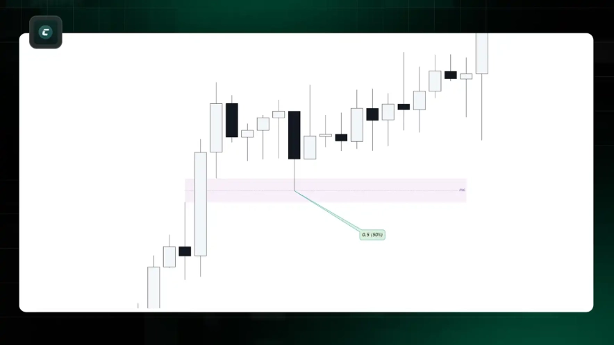 2. 0.5 (50%) — ціна тестує 50% зони FVG, що є важливим рівнем, де ціна може отримати реакцію.