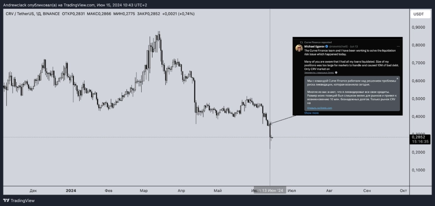Або з нещодавніх проєктів варто розглянути ситуацію з токеном CRV.