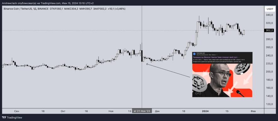 Графік BNB за добу до виходу новини про звільнення CZ.