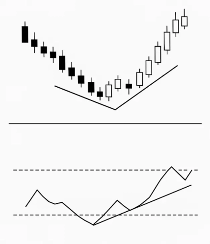 Індекс відносної сили зручно використовувати для виявлення конвергенції на переломних ділянках — наприклад, у зонах 30–40 або 60–70.