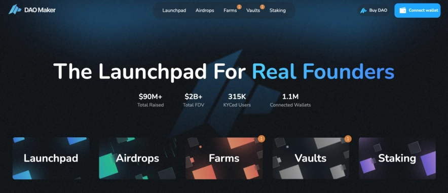 DAO Maker – це один з більш просунутих та гібридних launchpad-проектів, який поєднує елементи краудфандингу, інкубації та модулі розподілу, орієнтований на більш активних та лояльних учасників. Основний формат, який застосовує DAO Maker, називається SHO (Strong Holder Offering) – він віддає перевагу тим, хто тримає та стейкінгує токени DAO, і враховує активність та внесок в екосистему при розподілі часток.