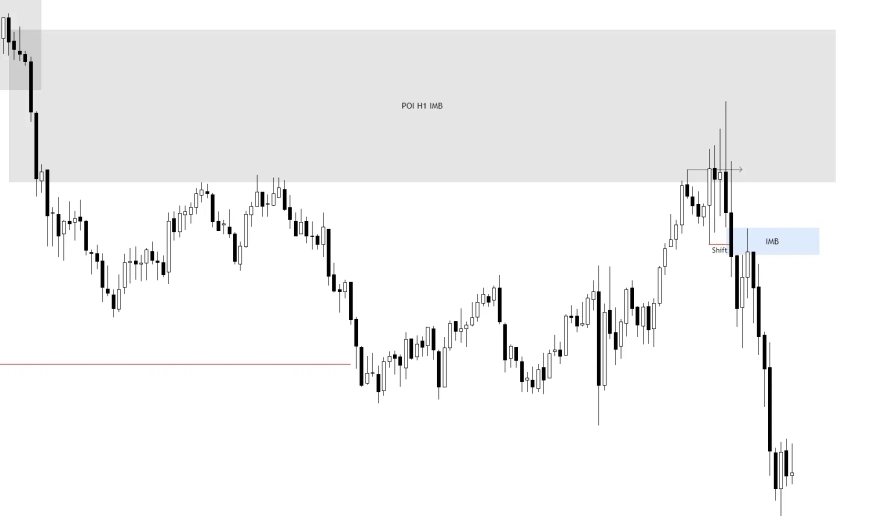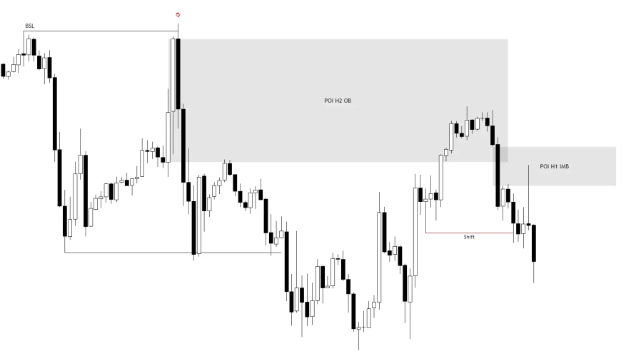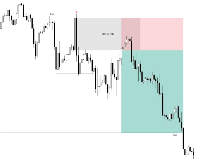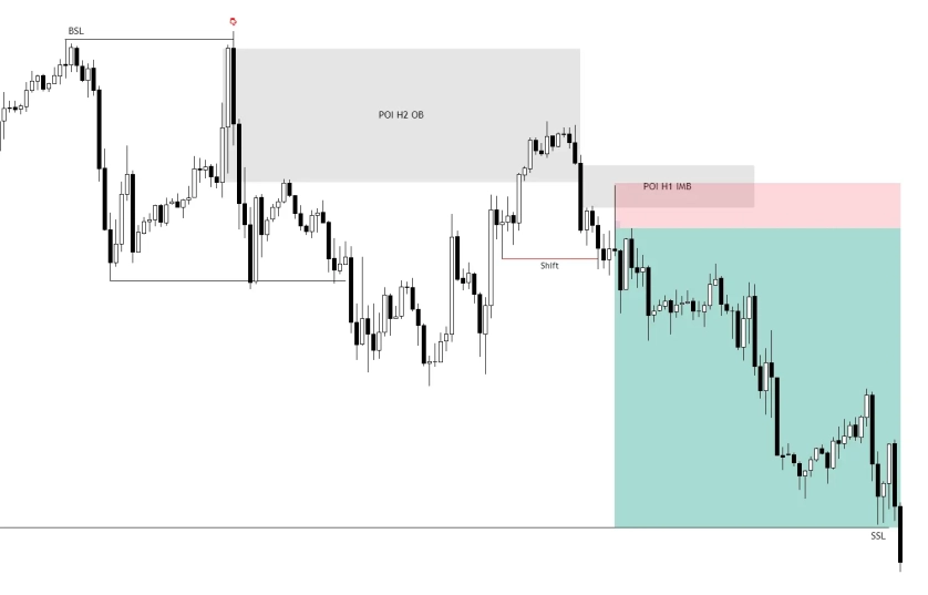 На тесті нашої вже H1 POI отримуємо м3 shift і LTF FVG, від якого здійснюємо вхід у позицію.