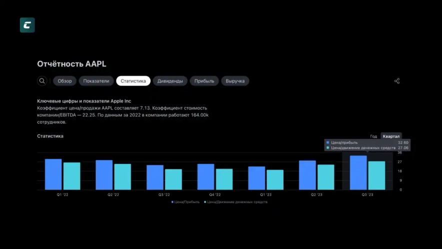 станом на 30.09.2023 від операційної діяльності за останнім звітом компанія отримала 3.308 млрд доларів, інвестиційна діяльність принесла компанії збитки в розмірі 4.762 млрд доларів, а від фінансової діяльності компанія отримала 2263 млн доларів. Якщо підсумувати ці цифри, ми побачимо, що загалом компанія отримала 711 млн. доларів чистого прибутку за умови врахування всіх витрат.