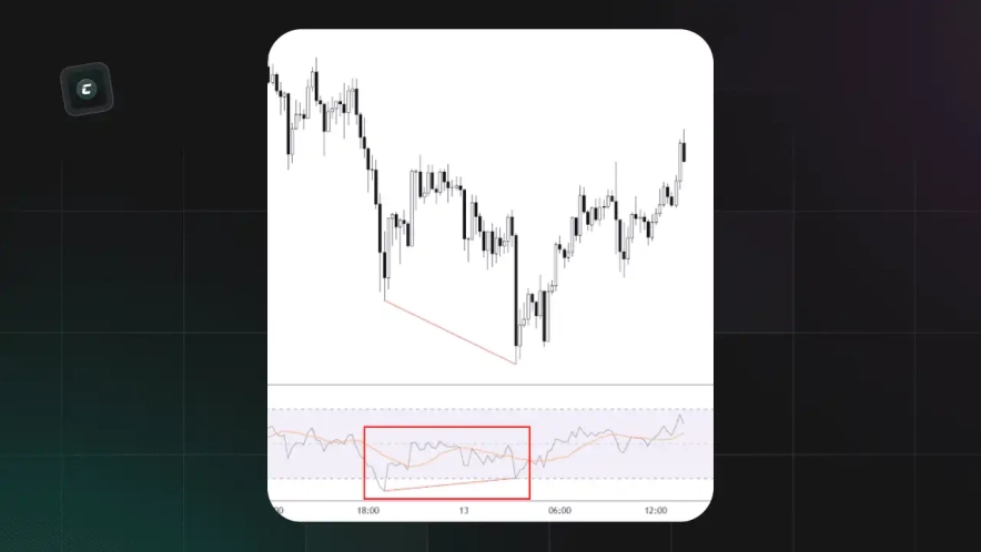 Дивергенція RSI вказує на те, що поточний напрямок руху ціни може бути вичерпано. Наприклад, якщо ціна досягає нового максимуму, а RSI не робить цього, це може вказувати на можливу зміну тренду.