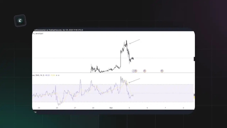 RSI коливається в діапазоні від 0 до 100. Традиційно, якщо RSI перевищує 70, це вказує на можливу перекупленість, тоді як значення нижче 30 може вказувати на перепроданість.