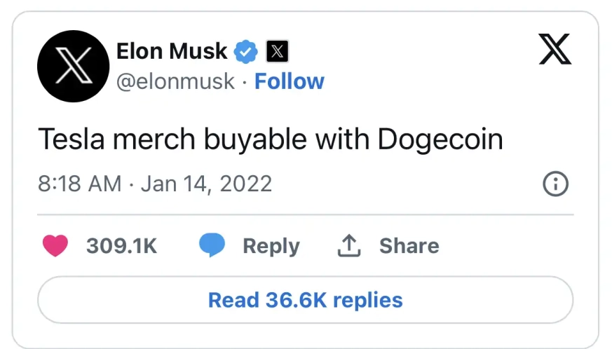 А у 2022 році він анонсував, що тепер усі охочі можуть купити деякі товари Tesla за Doge.