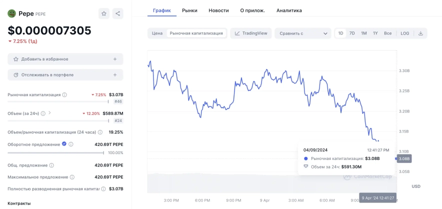 І поки багато фундаментально сильних криптоактивів не могли перевищити капіталізацію в 500 000$, Pepe дійшов до 3.08млрд$.