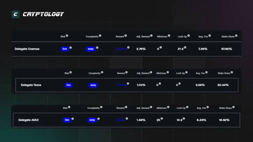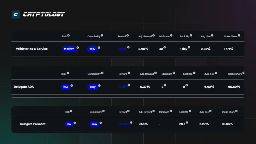 - Cardano (ADA) - це блокчейн третього покоління, що пропонує винагороду в районі 3% на рік.