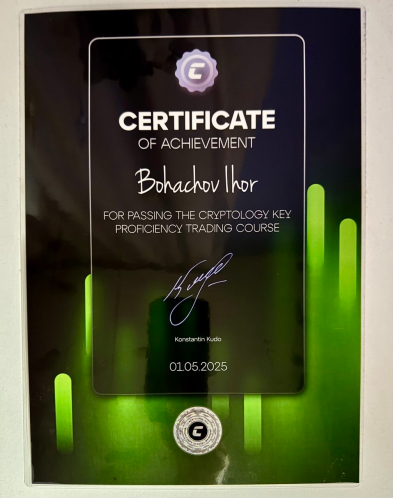 Про школу Cryptology Key я дізнався від друга, який був її випускником і досяг певних успіхів у трейдингу. Під час застілля він порадив кілька шкіл, але я обрав Cryptology Key. Після розмови з менеджером Кирилом я вирішив придбати курс і розпочати навчання.