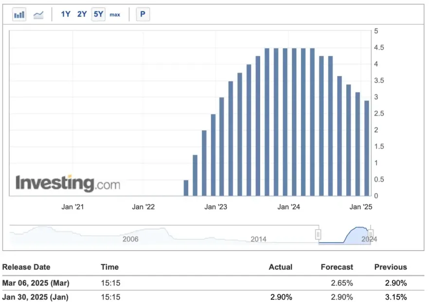 CPI - Індекс Споживчих Цін в єврозоні, ключовий індикатор інфляції, який впливає на рішення Європейського центрального банку (ЄЦБ). Завтра очікується зниження річного показника на 0,2%, що говорить про можливе зниження.