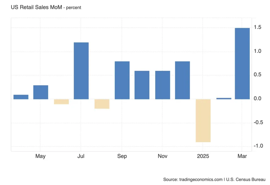 Очікування нульового зростання після сильного +1.4% у березні свідчить про можливе загасання імпульсу споживчого попиту. Якщо факт виявиться нижчим - це буде м'яким сигналом для ФРС. Вище - може відігратися зміцненням долара.