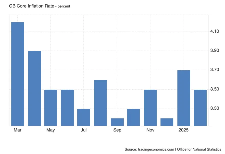 Core CPI вимірює річну інфляцію за вирахуванням цін на енергію, харчові продукти, алкоголь і тютюн, тобто дає точнішу картину стійкого цінового тиску в економіці.