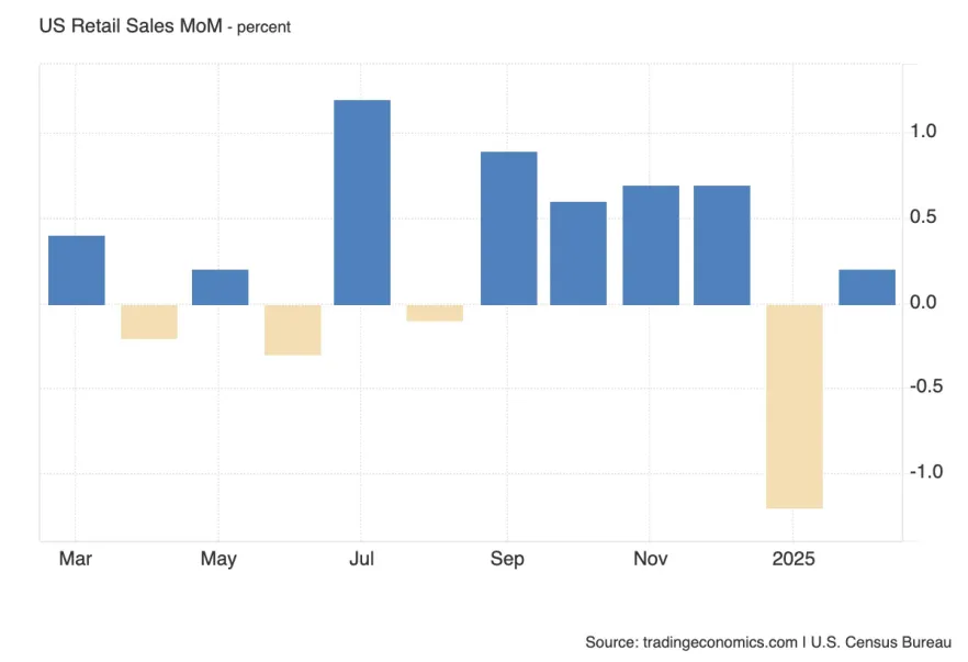 Core Retail Sales виключає продажі автомобілів, відображаючи більш стабільну і чисту картину базового споживчого попиту. На відміну від загальної метрики, тут прогноз виглядає стриманим і ближчим до поточних економічних реалій.