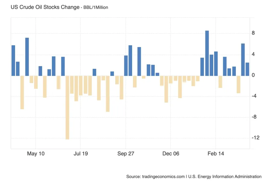 Щотижневий показник, що відображає зміну обсягу сирої нафти, що зберігається на складах комерційних компаній. Зростання запасів нафти (вище прогнозу) → вказує на надлишок пропозиції та може призвести до зниження цін на нафту.