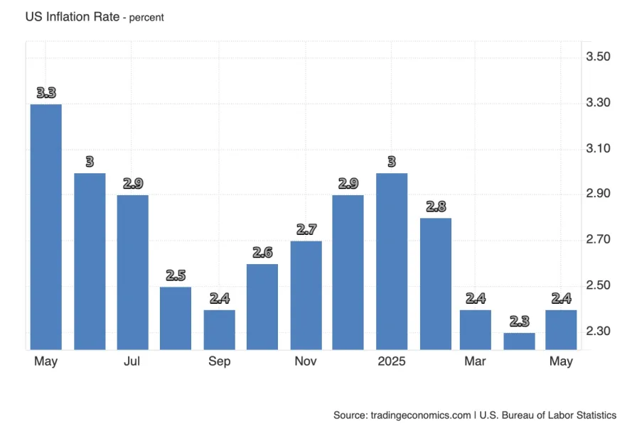 У травні ринок чекав 2.5%, але отримали 2.4% - долар тоді ослаб, оскільки інфляція не виправдала очікувань. Зараз знову закладається відскік - консенсус на 2.6%. Якщо цифра виявиться нижчою, це буде повтор минулого сценарію з тиском на долар; якщо ж очікування підтвердяться або перевищаться - ймовірно, відбудеться короткострокове зміцнення USD на тлі переоцінки темпів зниження ставок.