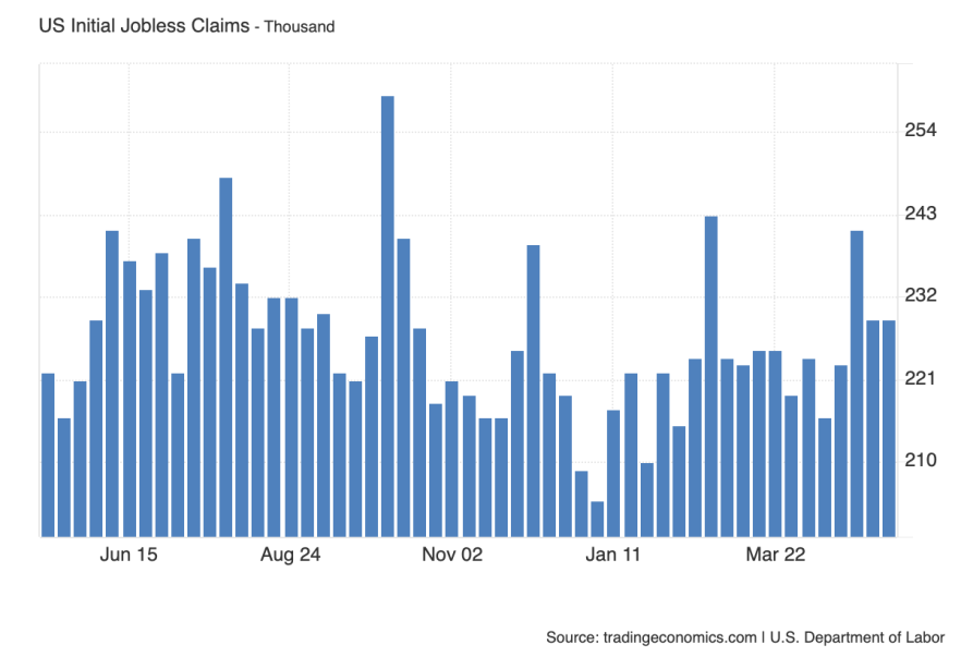 Це щотижневий індикатор стану ринку праці США. Показник залишається поблизу середніх значень,