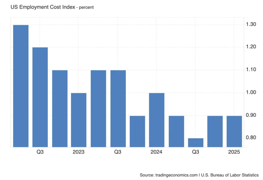 той індекс вимірює зростання витрат на оплату праці, включно із зарплатами та соціальними виплатами. Він важливий для оцінки інфляційних ризиків, пов'язаних із зарплатами.