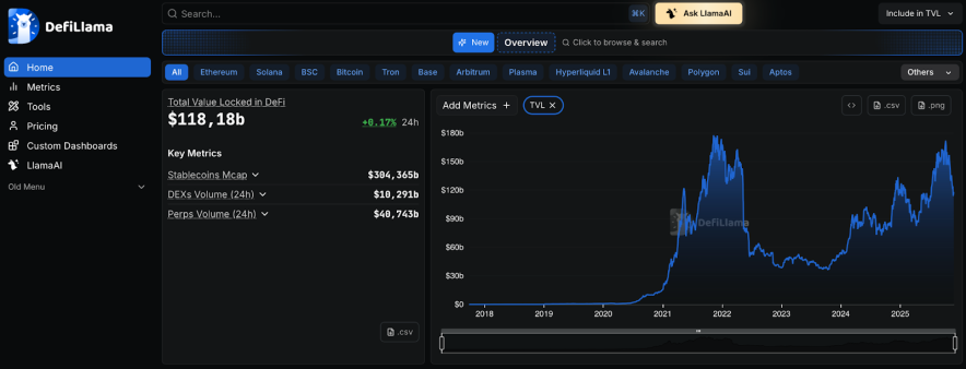 Найпопулярніша і найавторитетніша з них – DeFi Llama. Це агрегатор даних, який збирає інформацію з сотень протоколів і блокчейнів, автоматично оновлює її в режимі реального часу і показує об'єктивну картину ліквідності в екосистемі.