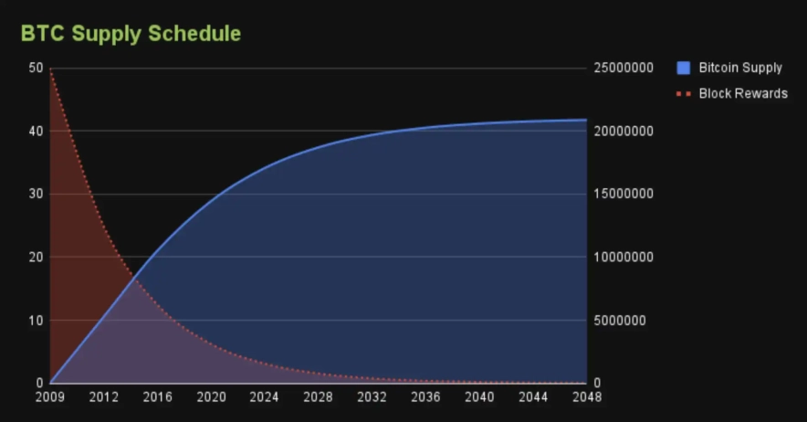 Уменьшение скорости выпуска новых монет обусловлено уменьшением вознаграждения за блок биткоина, происходящим примерно каждые четыре года, что известно как события по сокращению биткоина.