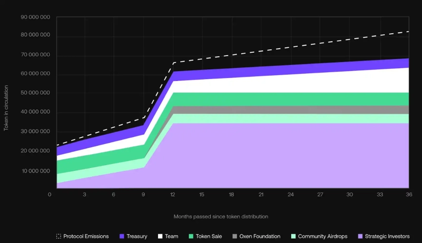 Chainflip использует гибридную токеномику. Существует как чеканка, так и сжигание токенов. Протокол не имеет фиксированной эмиссии токенов. На старте эмиссия сети будет состоять из 90 миллионов токенов FLIP, но со временем будет меняться в зависимости от спроса. Это очень похоже на то, как работает экономика токенов Ethereum после обновления EIP-1559, которое оказалось очень успешным в ограничении предложения ETH и вознаграждении валидаторов и держателей. Все комиссии за транзакции в систематически сжигаются; комиссия в размере 0,1 % берется с каждого свопа и используется для покупки и сжигания FLIP, что при достаточном объеме позволяет сжечь больше FLIP, чем выдается валидаторам.