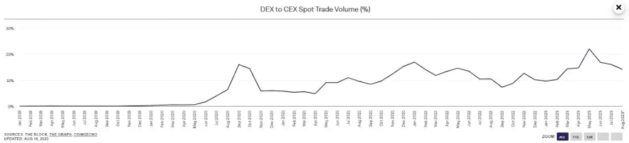 Долгое время проблемы оставались нерешенными, но DeFi начинает дорабатываться и превращать проблемы в преимущества. Объемы децентрализованных площадок (DEX) начинают расти все больше относительно объемов централизованных площадок (CEX).
