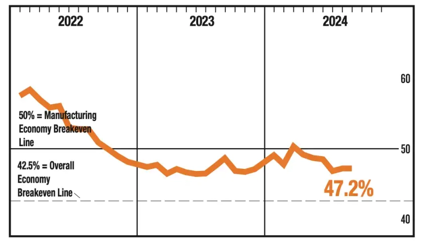 Считается, что показатель производственной активности выше 50 указывает на экономический рост, но учитывая исторические закономерности, есть небольшая погрешность, и на самом деле все, что выше 42.5 также указывает на экономический рост, а вот показатель ниже уже свидетельствует о сокращении деловой активности.