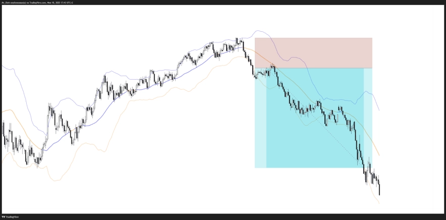 Когда цена выходит за пределы верхней или нижней границы Bollinger Bands, это может свидетельствовать о возможном развороте или продолжении тренда с высокой волатильностью. Если цена пробивает верхнюю полосу, это может означать, что актив перекуплен, а если нижнюю - перепродан. Однако пробитие границ не всегда означает разворот, поскольку в сильном тренде цена может "прилипать" к одной из границ, сигнализируя о продолжении движения. Поэтому линии Боллинджера чаще всего используют в сочетании с другими индикаторами или уровнями поддержки и сопротивления для подтверждения сигналов.