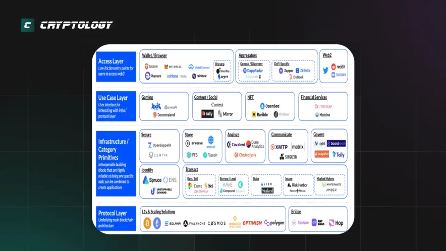 - Взаимодействие без необходимости доверия (блокчейн) - необходим децентрализованный протокол для взаимодействия участников внутри сети. На данный момент таких экосистем много. Все они пытаются улучшить какие-то элементы, чтобы быть лучше.