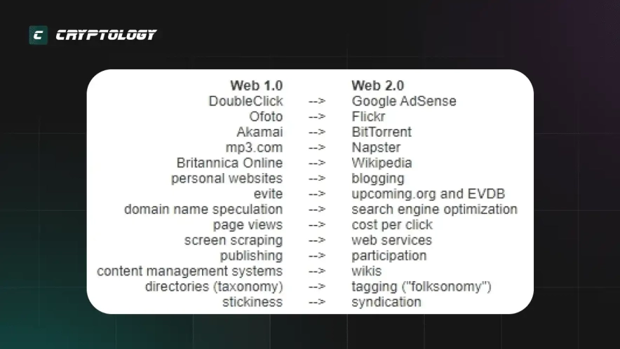 С момента появления интернета он постоянно развивается. В самом начале интернет был площадкой, которая позволяла потреблять контент, вы не могли взаимодействовать с ним. Примером может служить любой старый новостник, похожий на газету. Вы просто читаете и всё.