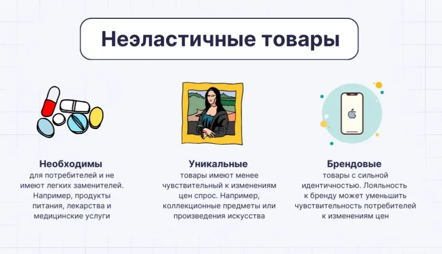Это часто бывает с товарами, которые легко заменить другими: если подорожает одна марка сока, покупатель просто выберет другую. А вот спрос на жизненно важные товары, например, на лекарства или бензин, как правило, неэластичен – люди продолжают покупать их даже при росте цен.