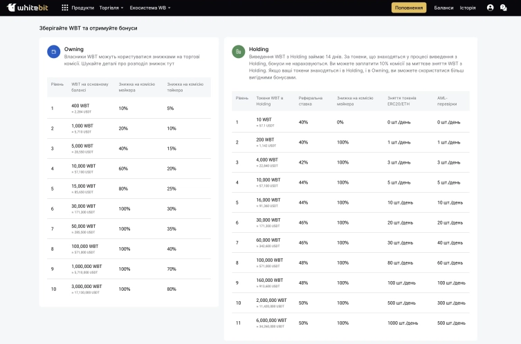 - Возможность участия в акциях и розыгрышах. WhiteBIT регулярно проводит акции и розыгрыши, в которых могут участвовать держатели WBT.