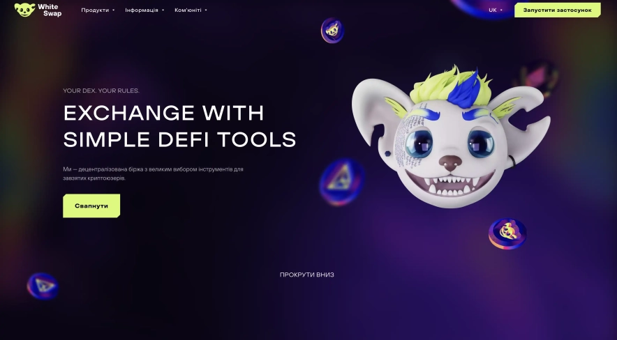 - WhiteSwap - это децентрализованная биржа (DEX), которая работает на основе технологии AMM (automated market maker). WhiteSwap была запущена в 2021 году биржей WhiteBIT. На WhiteSwap можно торговать криптовалютами без посредников. Торги на бирже осуществляются через пулы ликвидности, которые создаются пользователями. Пользователи, которые предоставляют ликвидность, получают вознаграждение в виде токенов WhiteSwap (WSD).